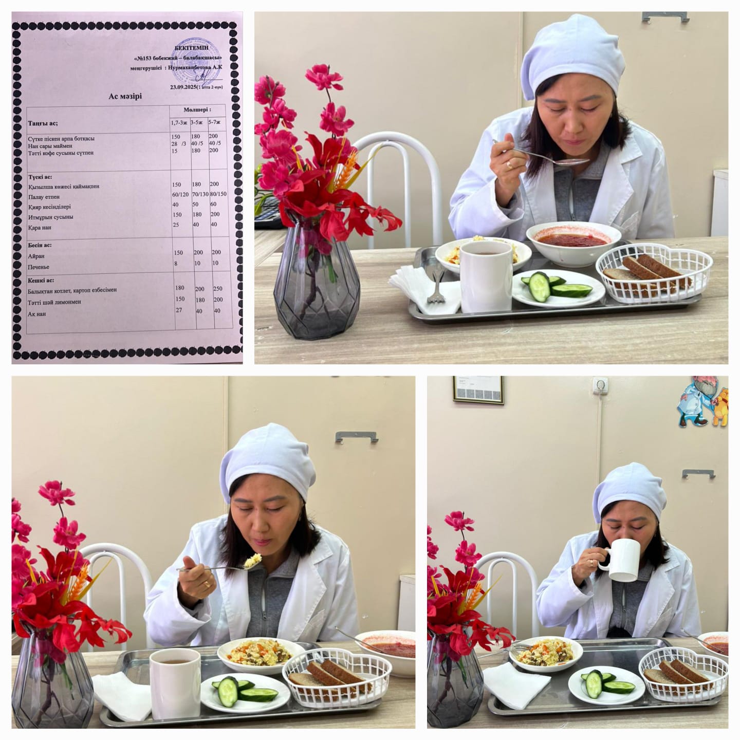 мемлекеттік балабақшасы » Тамақтандыру » Түскі ас мәзірімен танысып, дайын тамақтың органолептикалық сапасын «Ботақан» ортаңғы тобының ата -анасы Ахметқызы А бағалады